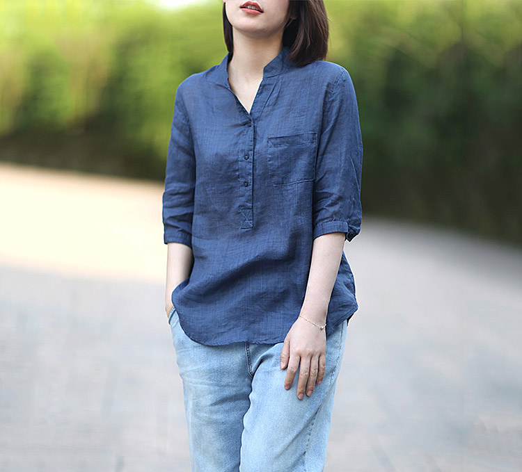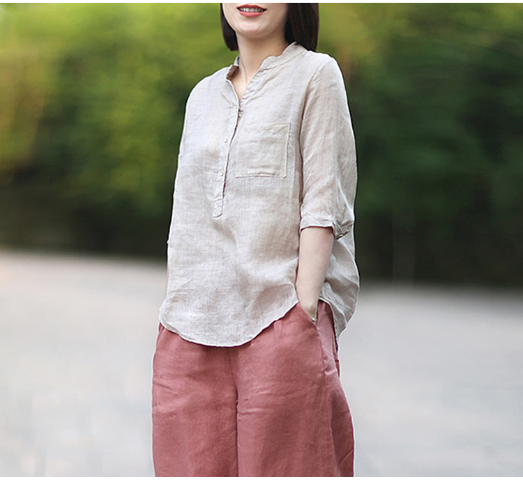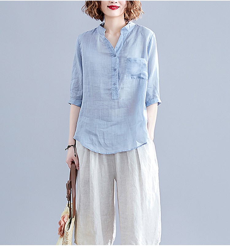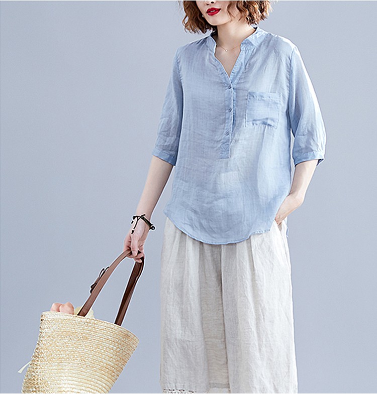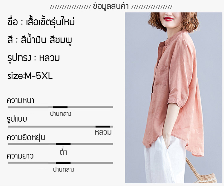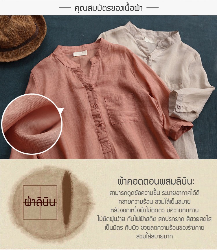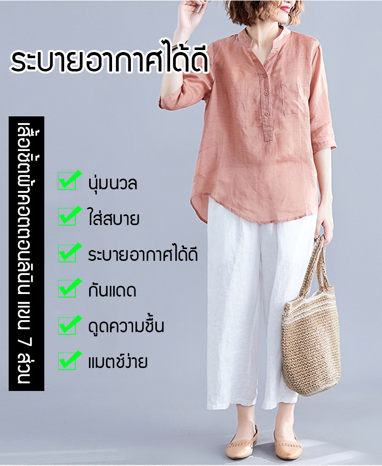 เสื้อเชิ้ตผ้าคอตตอนลินินแขน 7 ส่วน